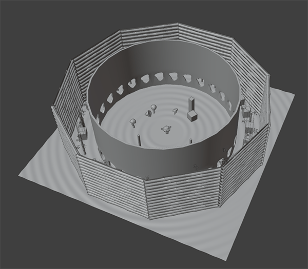 The Arena is a dynamic background object, named for its circular layered structure.