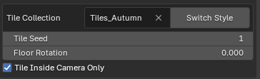 If Tiled is selected you will be shown options to specify the tile source collection, the tile seed, the rotation of tiles and the option to create tiles only within the active cameras bounds.