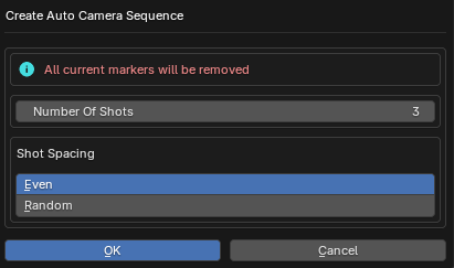 Pressing this will bring up a pop up allowing you to specify how many shots (how many markers) you want added, and whether you want their spacing to be even or random.