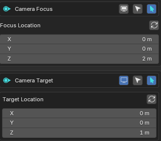 Camera Focus and Camera Target act like the Light presets Parent and Target system.