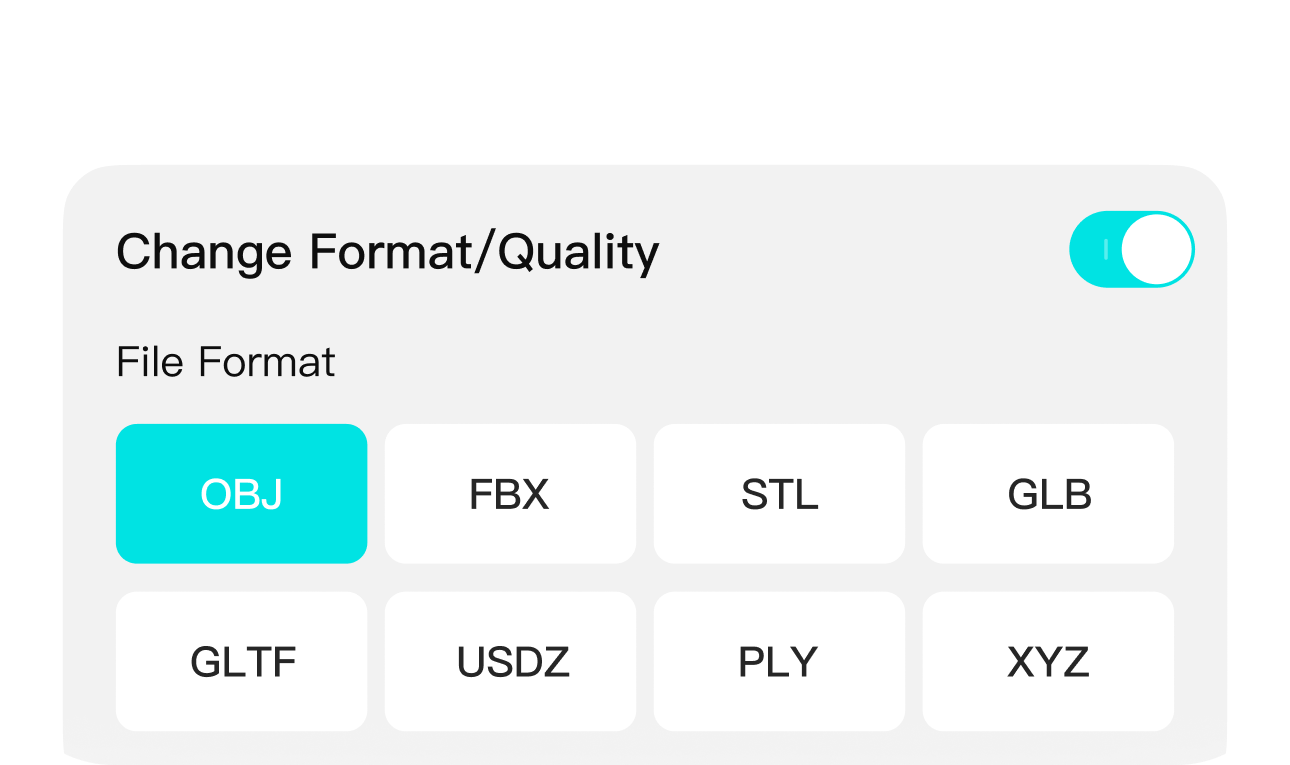 OBJ, STL, GLTF, FBX, USDZ, and other 3D formats