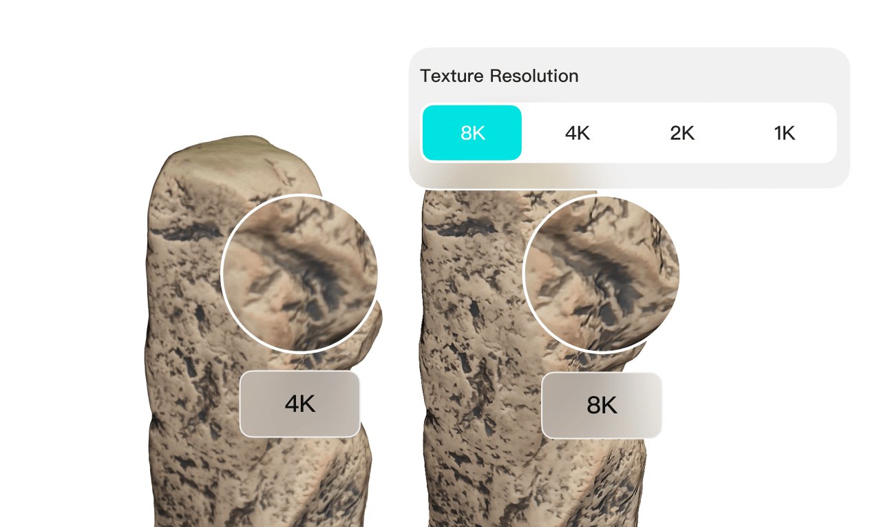 High-poly mesh with millions of vertices and up to 8K textures