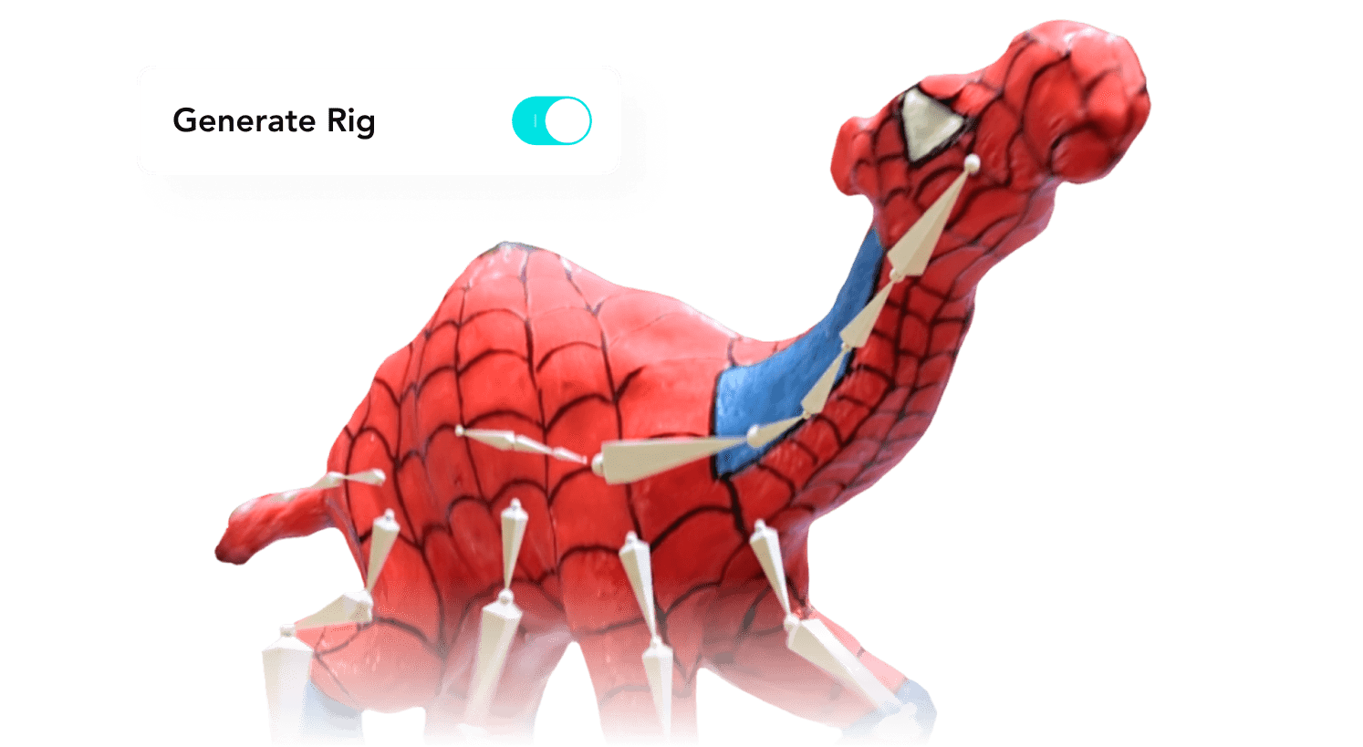 KIRI Engine's team developed the proprietary technique of Auto-Rigging, which allows all Photo Scans and Featureless Object Scans to be exported with an automatically generated skeleton rig based on the shape of the model. This feature allows for quick rigs on models that inherently have skeletons such as humans or quadripetal animals. In addition, as auto-rigging is achieved by the compression of mesh surfaces, this can create some interesting effects on inanimate objects.